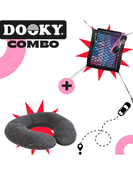 Комбо за път: Dooky Original: Органайзер за седалка за кола + Dooky Original: Възглавница за път Dark Grey