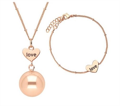 Комплект Медальон за бременни Бола и гривна - Rose Gold Love