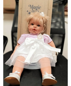 Куклите Magic Baby са ръчно изработени с внимание към детайла, висококачествени и направени от деликатен винил, с реалистични изражения, изразителни очи и нежен аромат на ванилия за едно вълшебно игрово изживяване. Висока е 47 см.  Susy  е приятна на допир кукла...