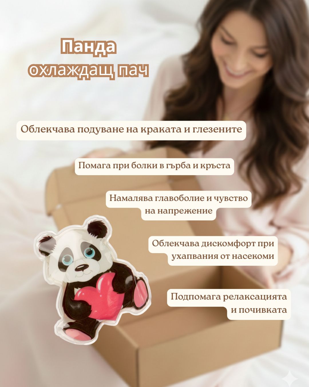 Този гел пач е практичен помощник още по време на бременността и остава незаменим и след това. Студената терапия облекчава подуване, напрежение и уморени зони, а топлата носи комфорт и отпускане. След раждането се превръща в бързо решение при температура, малки неразположения, удари или ухапвания – както за мама, така и за бебето. С включването му в кутията, бъдещата майка получава спокойствието, че е подготвена за всяка ситуация.