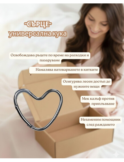 Семпъл, но изключително полезен аксесоар. Позволява да закачите чанта за бебешки принадлежности, пазарски чанти или раници и да имате ръцете си свободни.