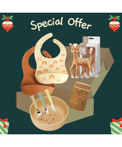 Подаръчният комплект " Сърничка в гората " е лимитиран и в себе си съдържа топ продукти от нашите bestseller-и специални подбрани за Вас! комплекта съдържа - Сърничката ФанФан, термо съд за храна, комплект от 2 бр силиконови лигавници, силиконова купа и сет прибори за хранене на Софи Жирафчето!...