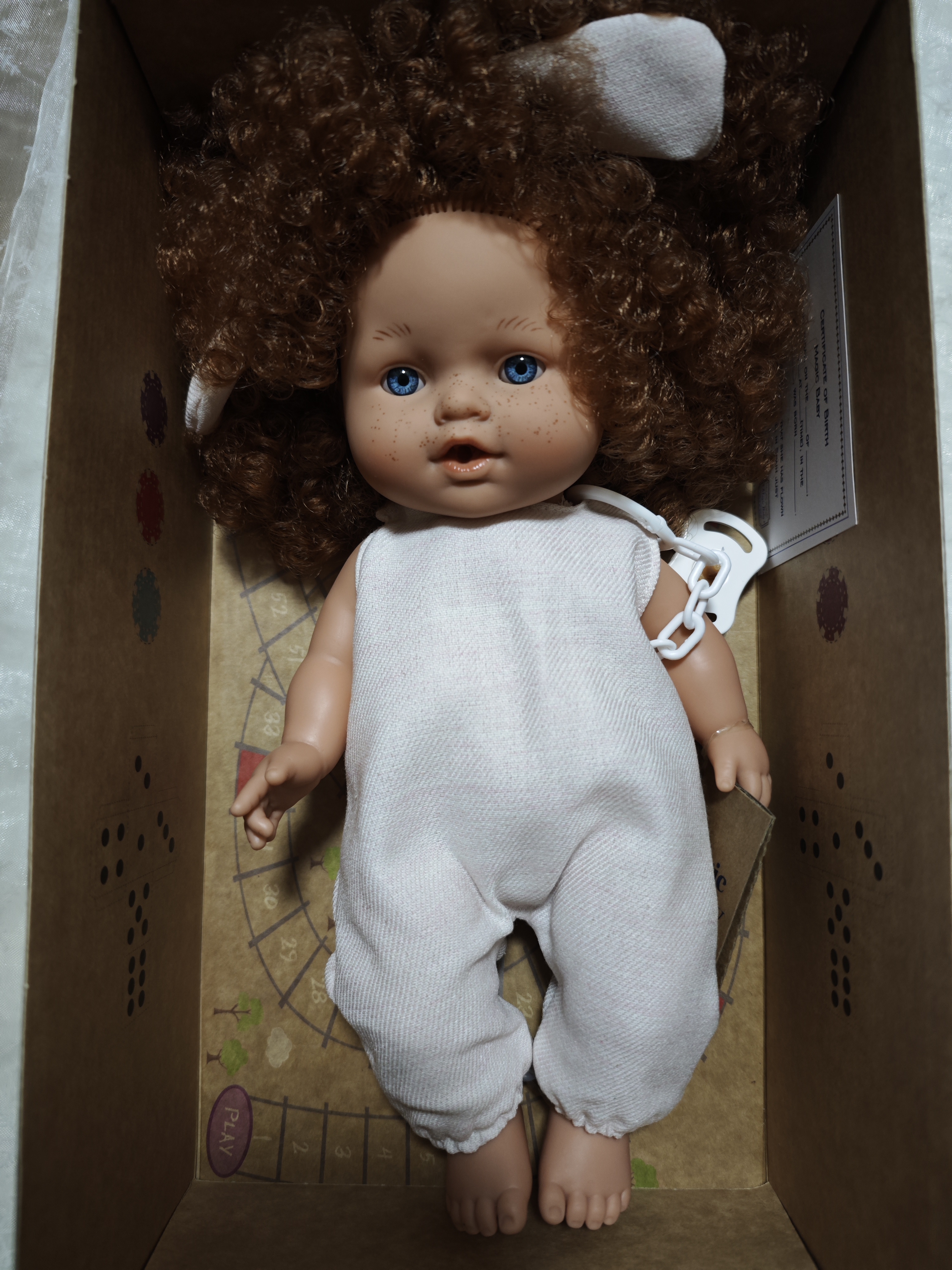 Включва "акт за раждане" поставен в плик.