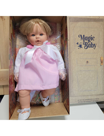 Куклите Magic Baby са ръчно изработени с внимание към детайла, висококачествени и направени от деликатен винил, с реалистични изражения, изразителни очи и нежен аромат на ванилия за едно вълшебно игрово изживяване.