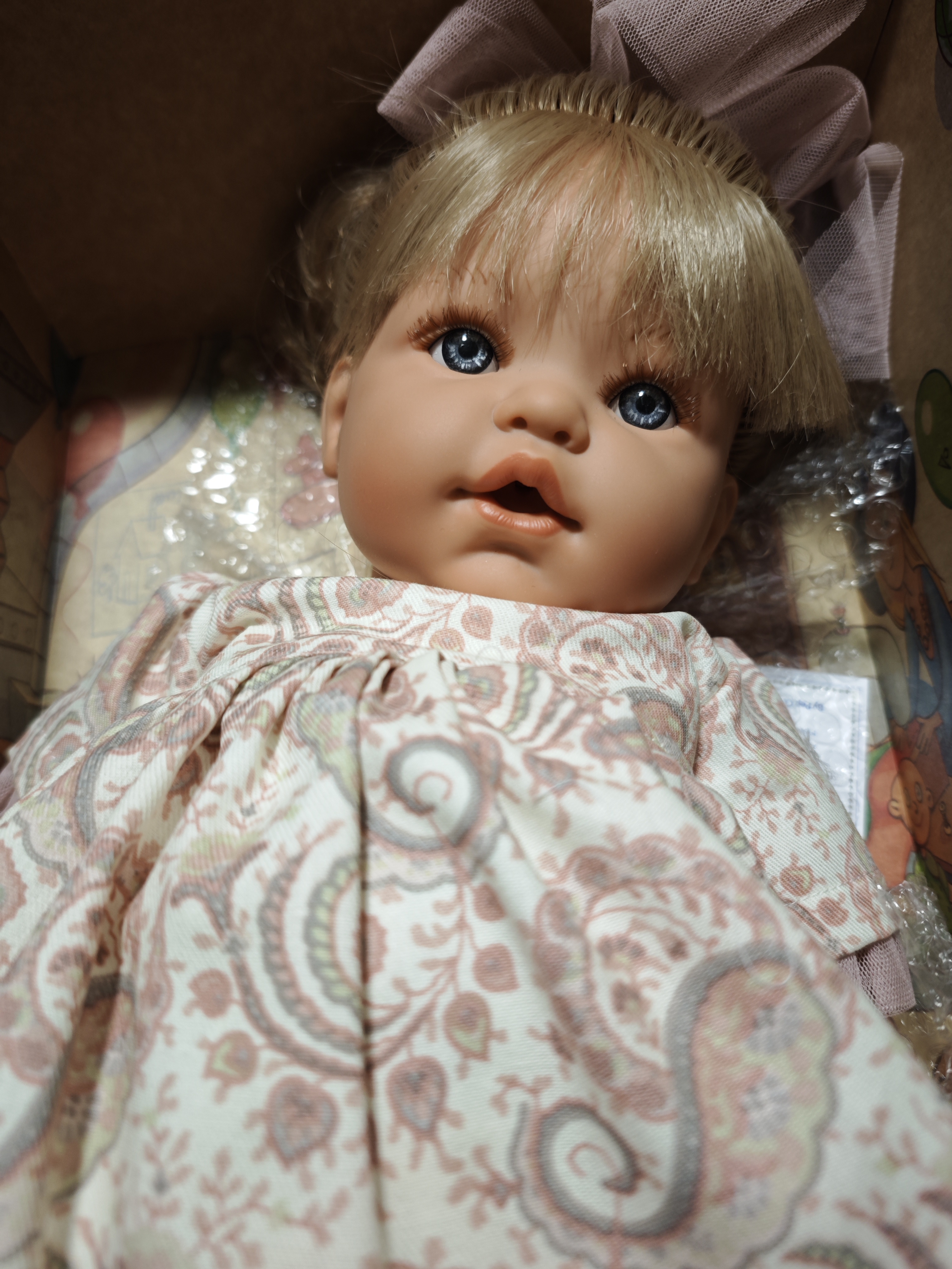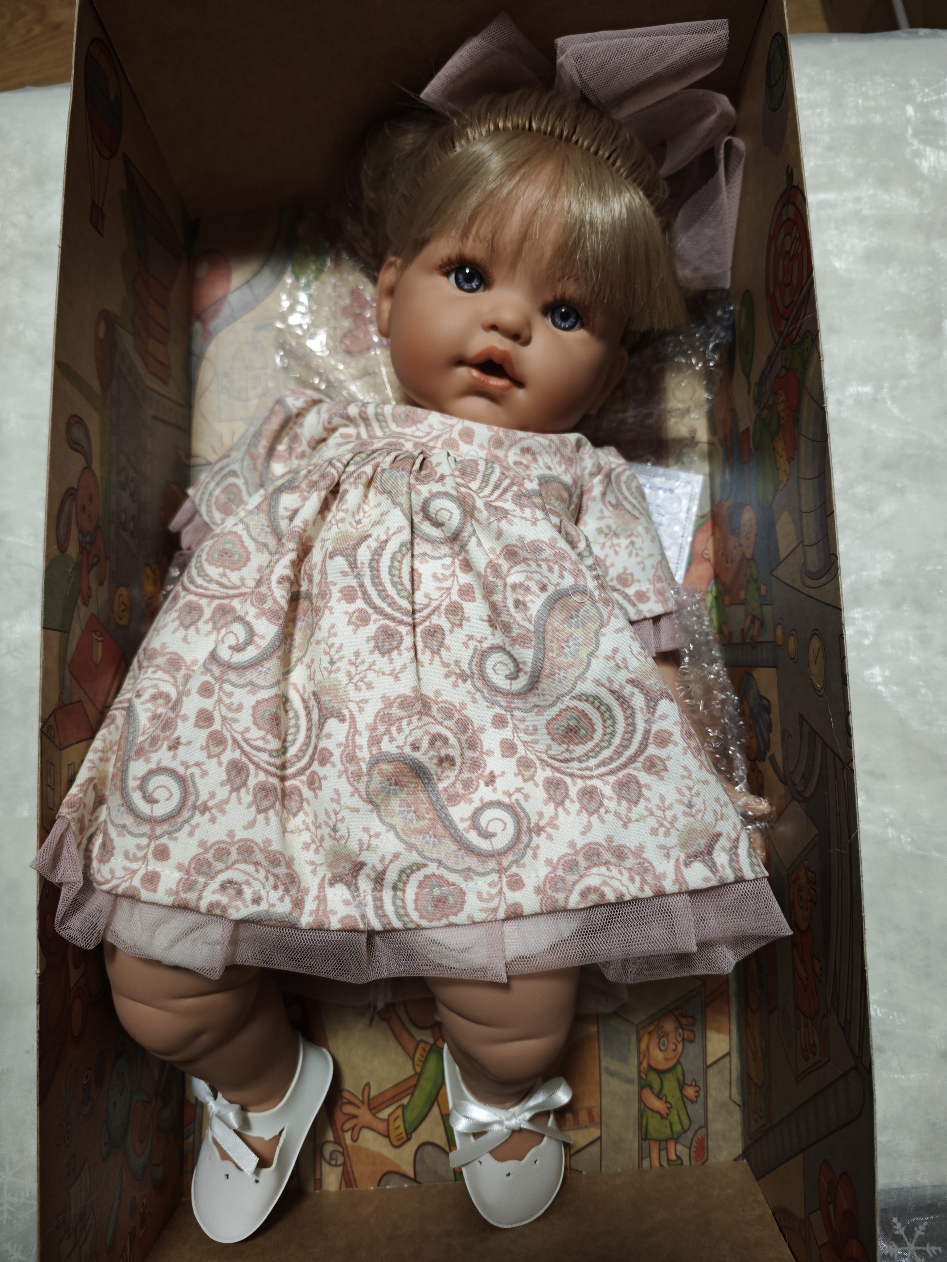 С красиви дрехи и аксесоари. Деликатно ароматизирана. Куклата НЕ върви с биберон.