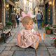 Тя е с розова панделка на главата.
