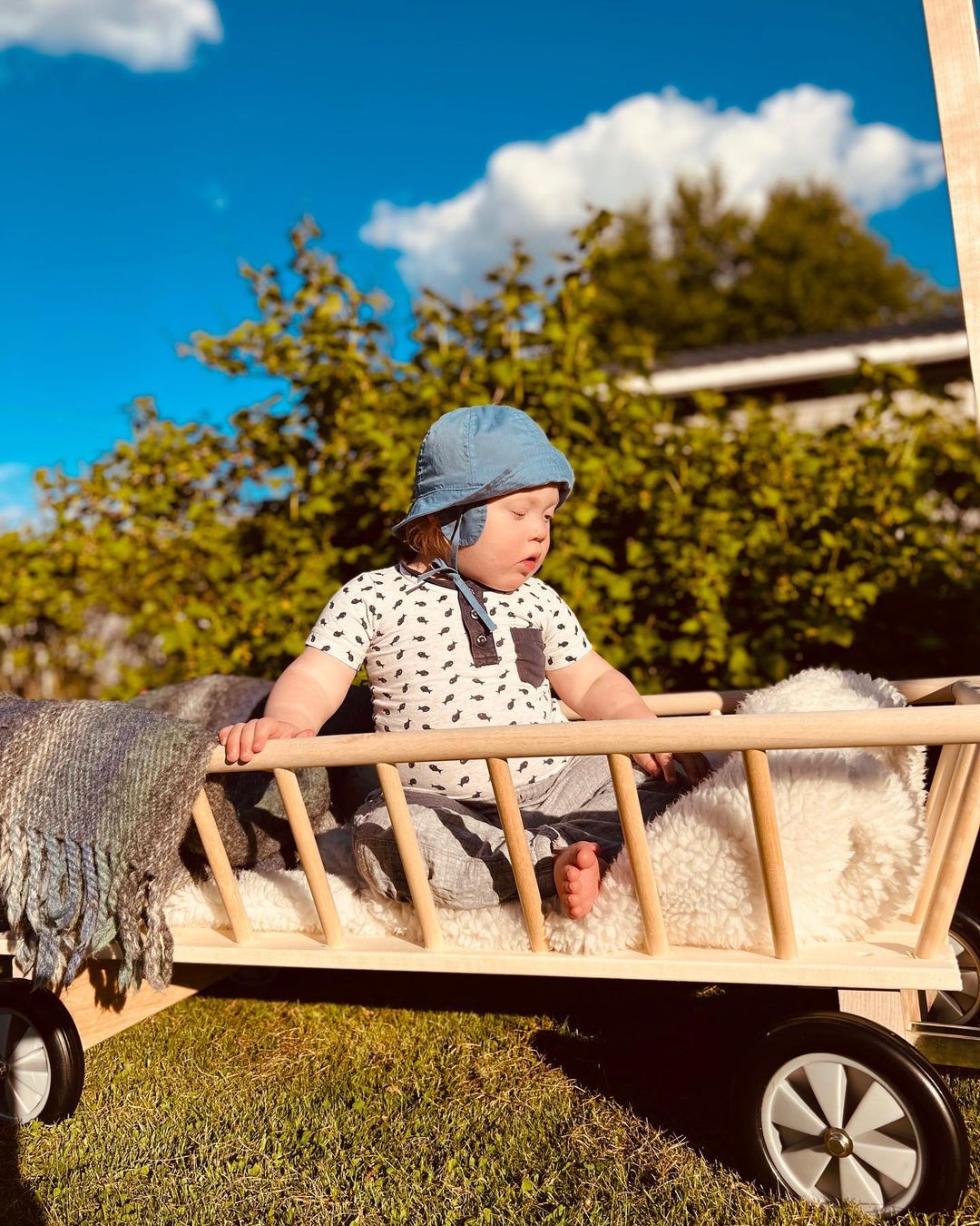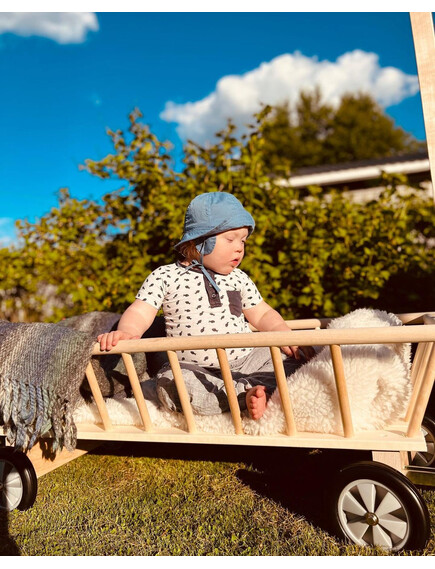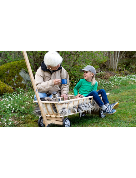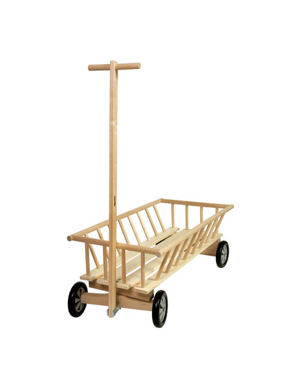Голяма, впечатляваща дървена количка! Тя е идеална за товарене на играчки или за дърпане на децата. Можете дори да украсите детската стая с количката, като я използвате за декоративна кошничка!