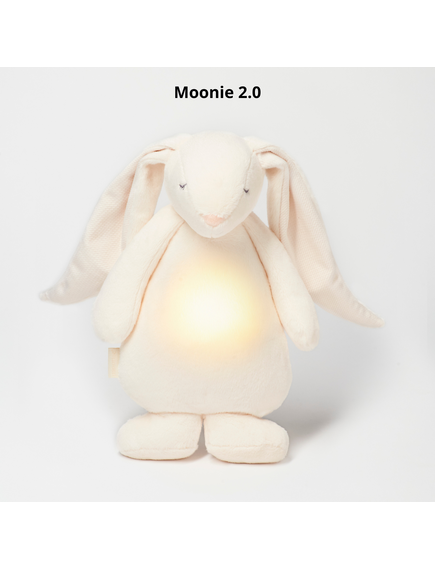 Зайо от колекцията на MOONIE е професионален помощник за приспиване на бебета. Благодарение на безвредните, естествени звуци, които възпроизвежда, той помага на бебето или детето да се успокои и да заспи по-бързо. И това не е всичко! MOONIE също е нощна лампа, която може да свети в 7 различни цвята, има сензор за плач и се зарежда чрез USBКрасиво опакован, идеален за подарък!