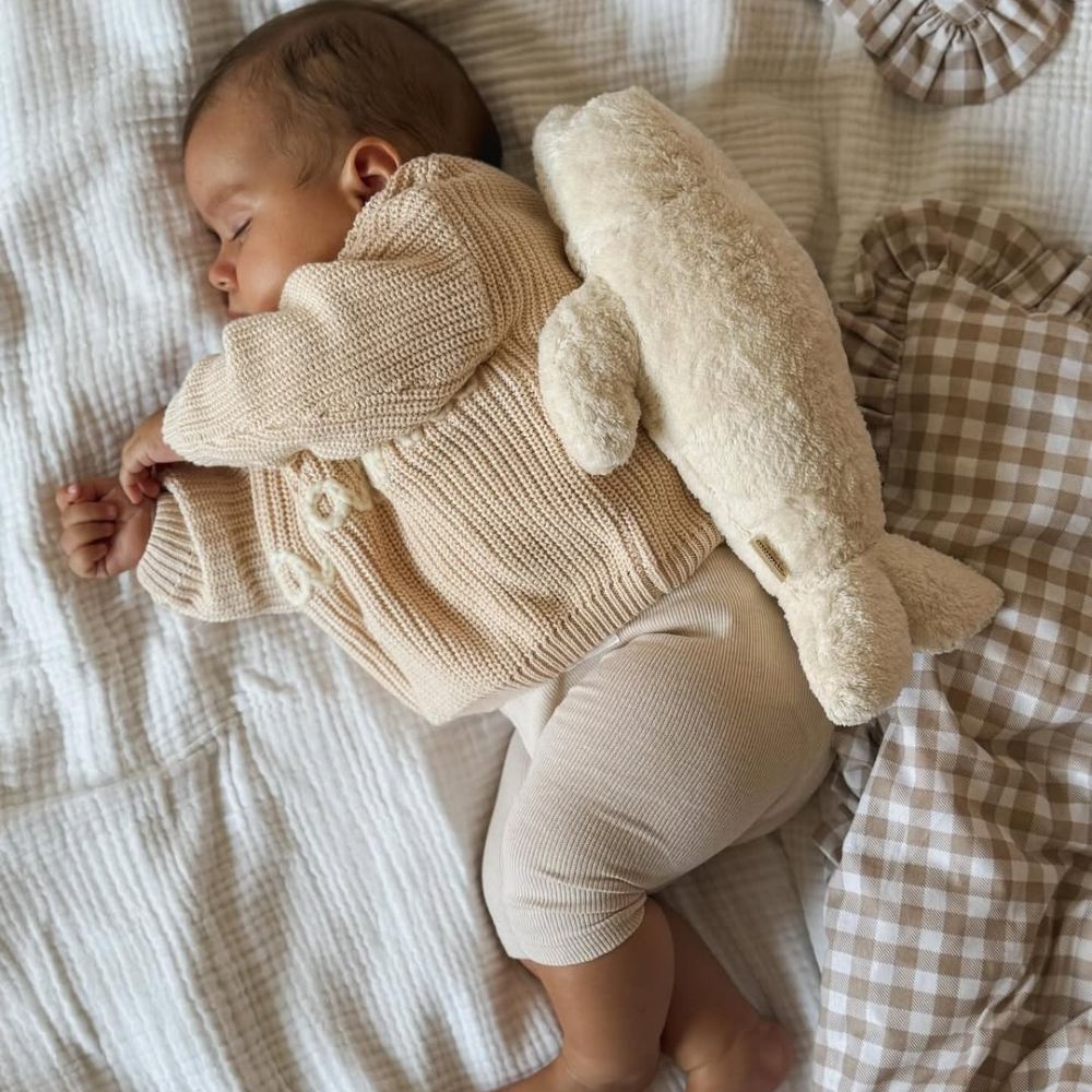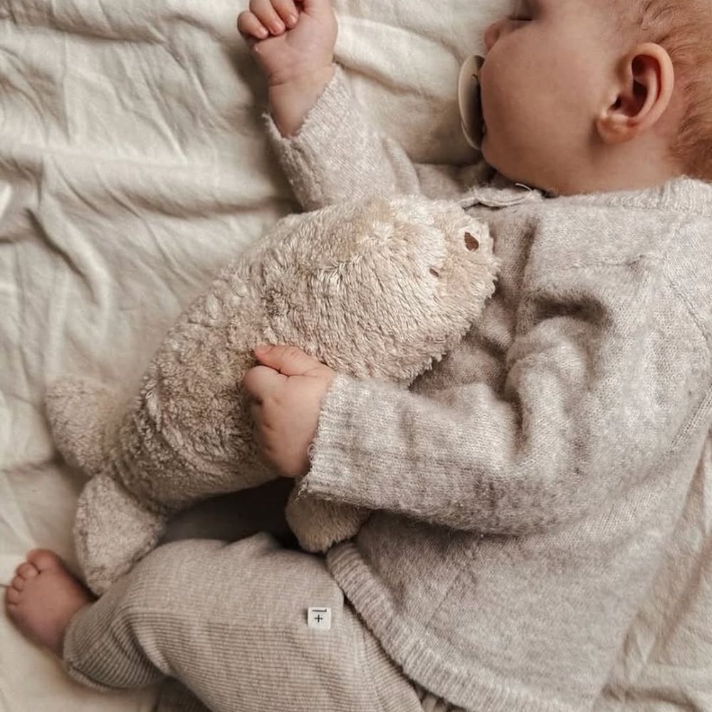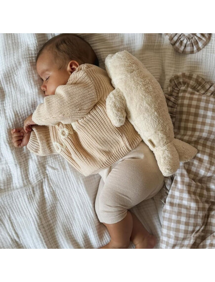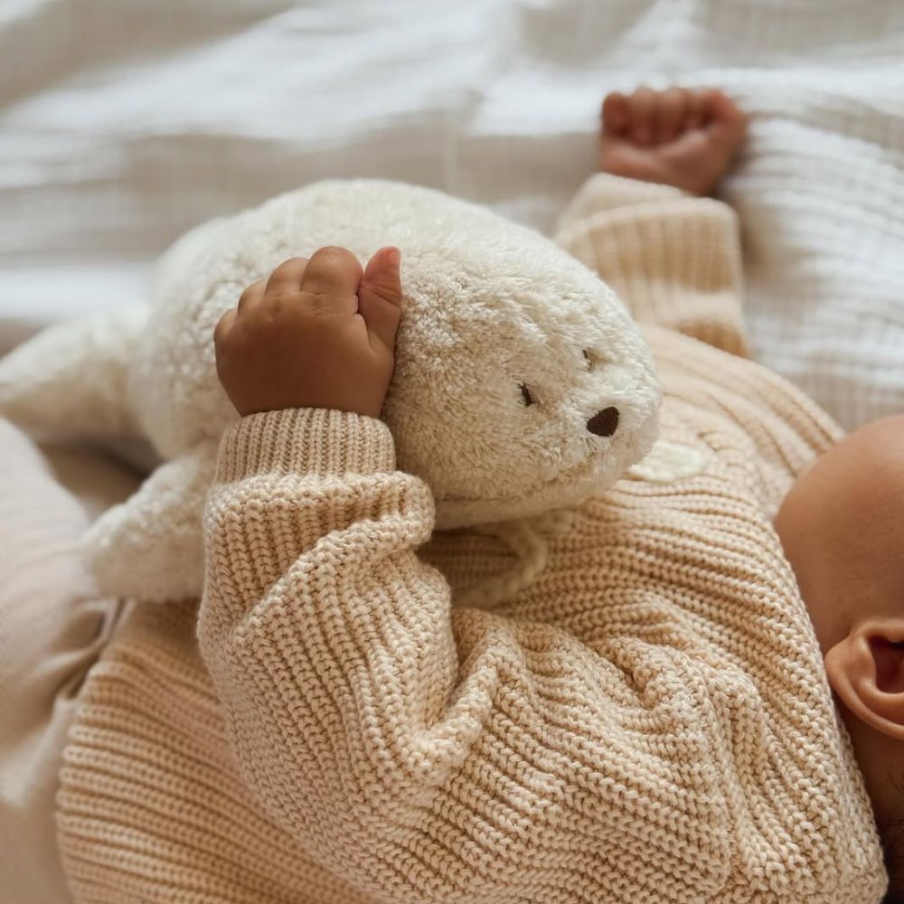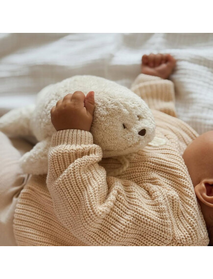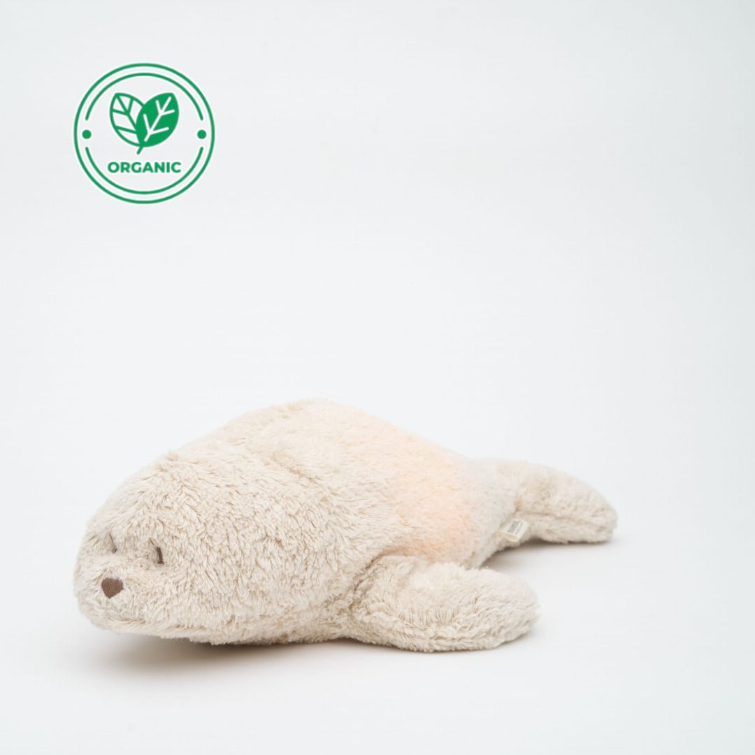 Плюшените тюленчета от колекцията MOONIE ORGANIC са направени от органичен памук притежаващ сертификат GOTS.