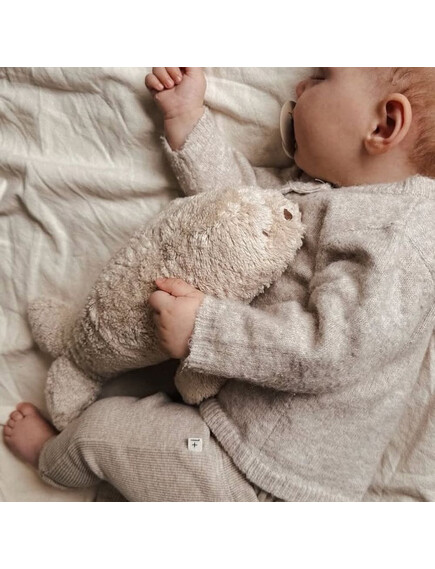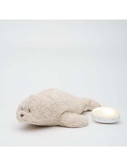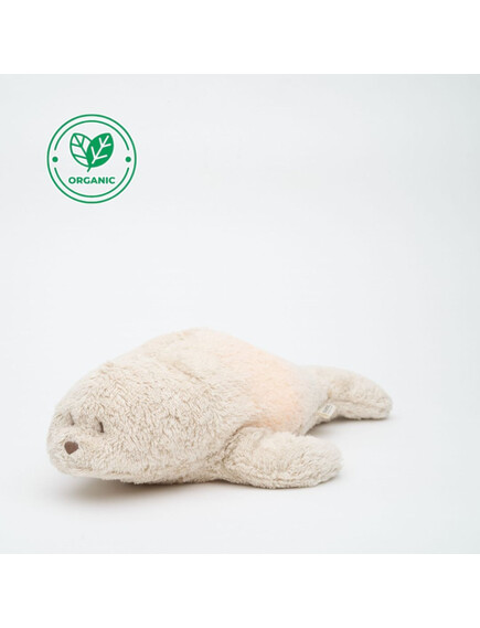 MOONIE ORGANIC 2.0: Приятелче за спокоен сън от органичен памук с нощна лампа и успокояващи звуци -Тюленче Sand