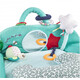 В удобно положение бебето може да се забавлявлява с висящите играчки, дрънкалката, залъгалката, топката или да опознава себе си в огледалото.
