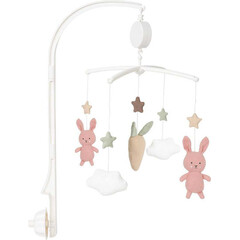 Тази музикална играчка за кошара е най-красивото допълнение за детската стая! Тя пуска нежна, релаксираща мелодия, докато красивите зайчета и моркови се движат. Различните цветове и форми стимулират както зрението, така и слуха на детето, като същевременно го успокояват....