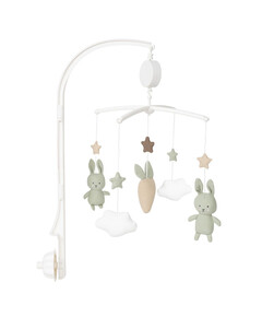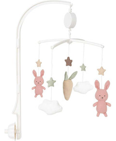 Тази музикална играчка за кошара е най-красивото допълнение за детската стая! Тя пуска нежна, релаксираща мелодия, докато красивите зайчета и моркови се движат. Различните цветове и форми стимулират както зрението, така и слуха на детето, като същевременно го успокояват....