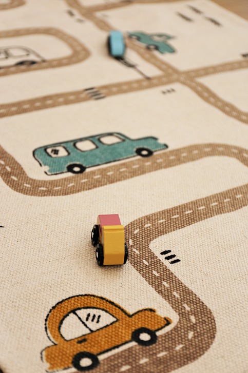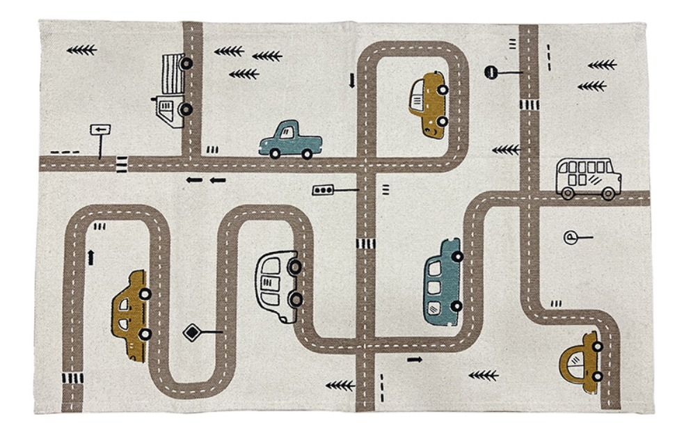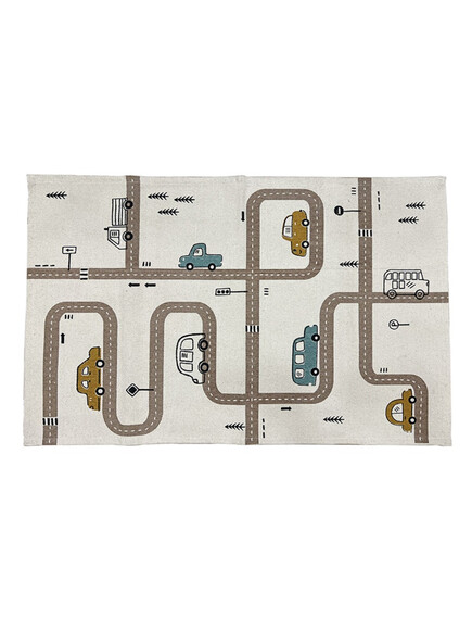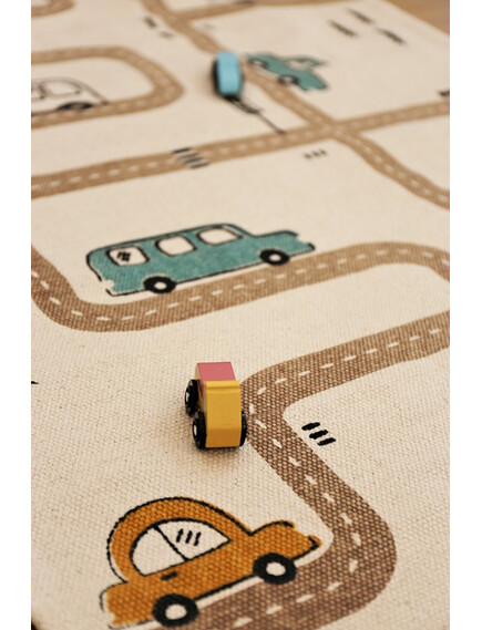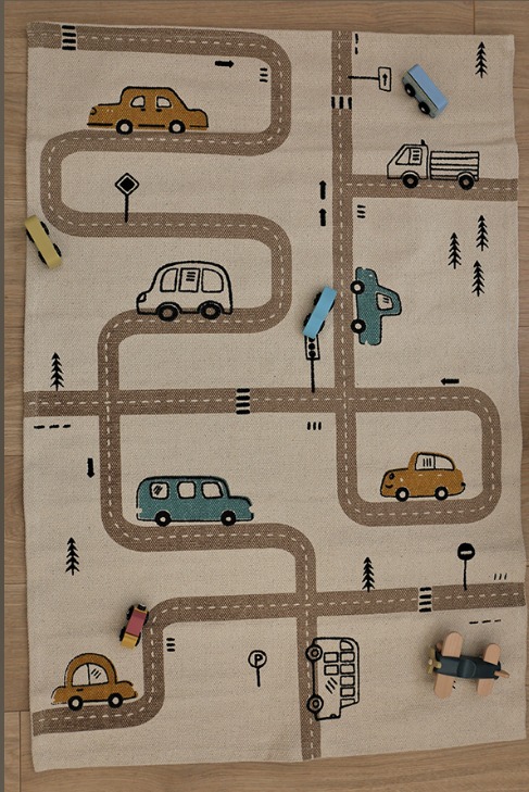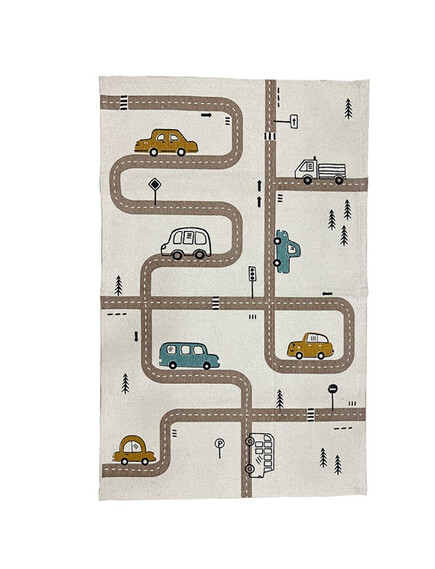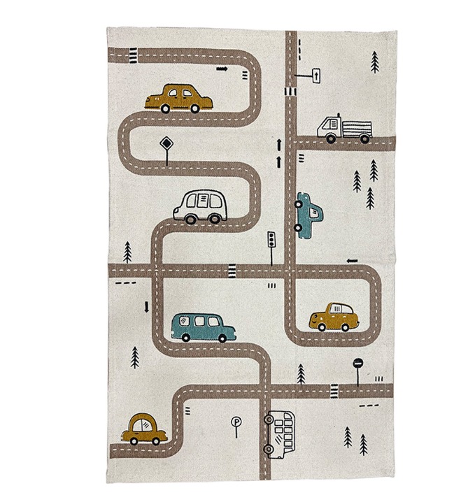 Внимавайте! Таксита, камиони и автобуси се движат по този натоварен път! Децата ще се влюбят в дизайна на този килим и той ще им помогне да развият въображението си!