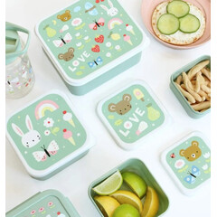 Запазете храната си свежа в този комплект кутии в супер сладката тема на A little lovely company . Плодове, зеленчуци, бисквитки, бонбони, сандвичи.. Всички те лесно могат да се поберат в една от тези кутии. Този сладък комплект за храна включва четири броя кутии с различен...
