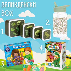 Великденски бокс за забавление и практичност за малки откриватели! Идеални за игра, пътувания и ваканции! 1. A little lovely company: Сет от 4 кутии за храна - Крокодилче Перфектни за училище, екскурзии или закуска у дома. Четири различни размера за удобно съхранение. Изработени от...