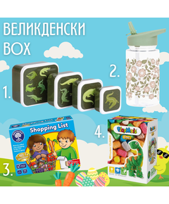 Великденски бокс за забавление и практичност за малки откриватели! Идеални за игра, пътувания и ваканции! 1. A little lovely company: Сет от 4 кутии за храна - Крокодилче Перфектни за училище, екскурзии или закуска у дома. Четири различни размера за удобно съхранение. Изработени от...