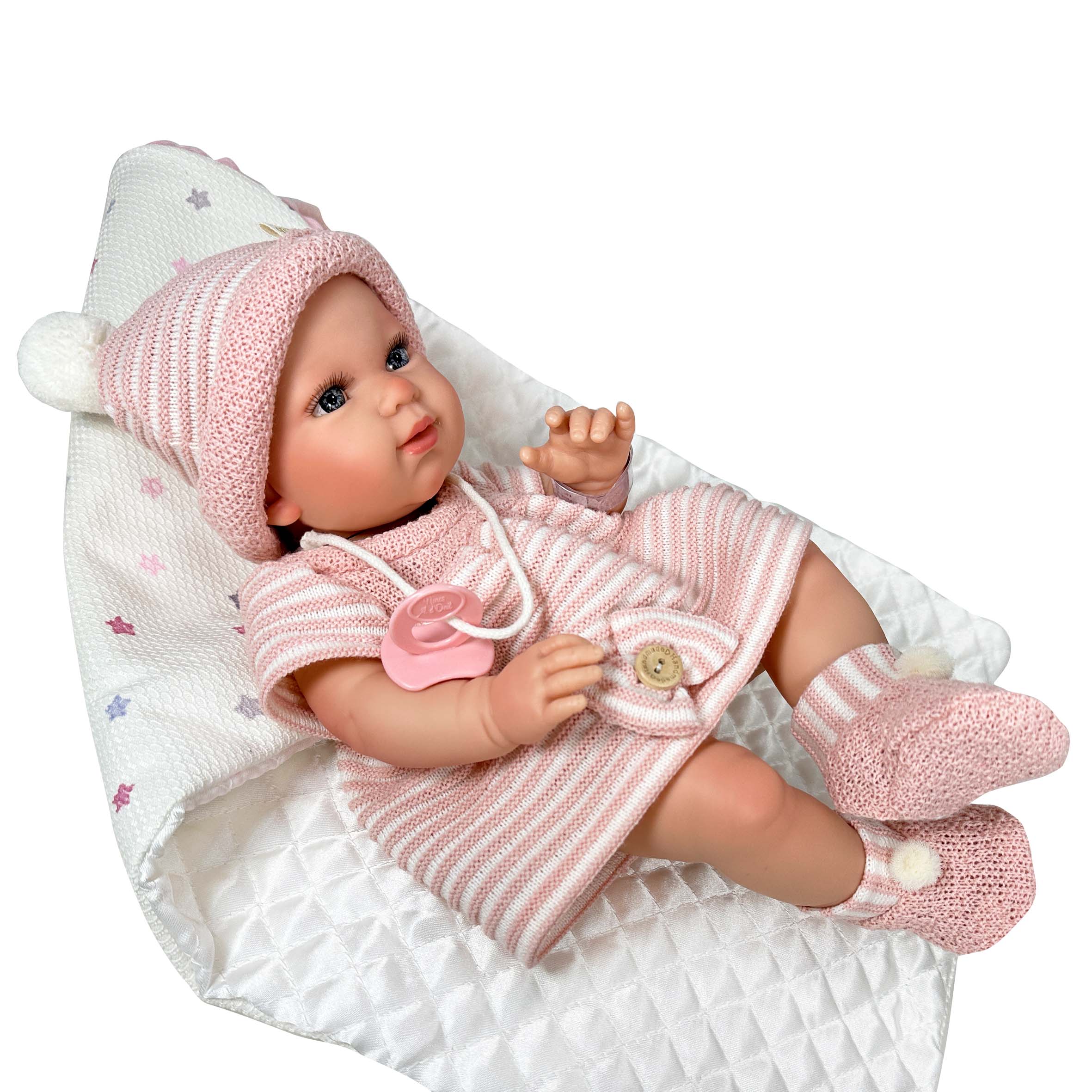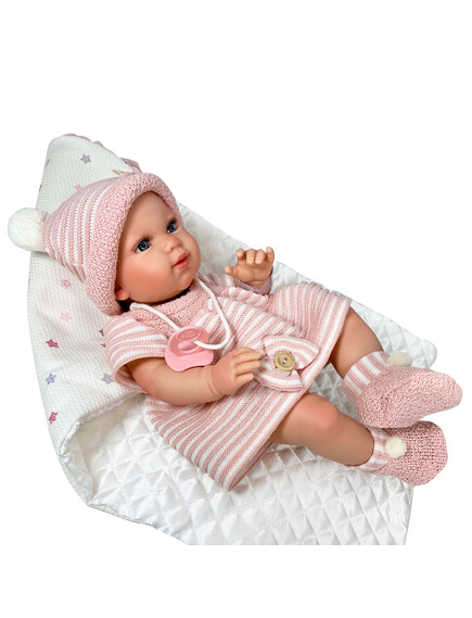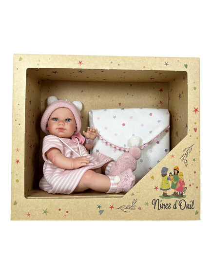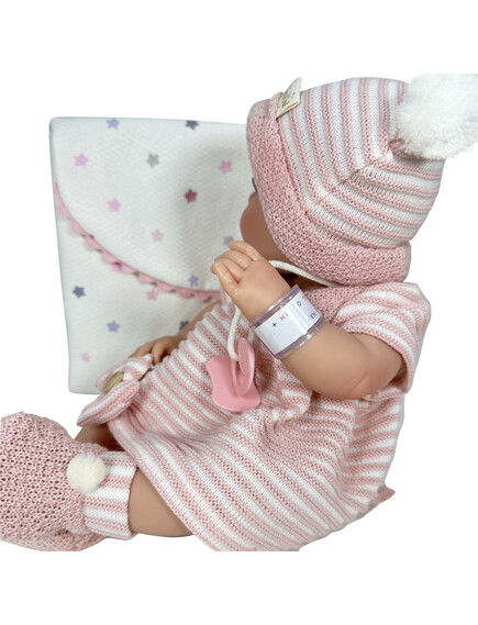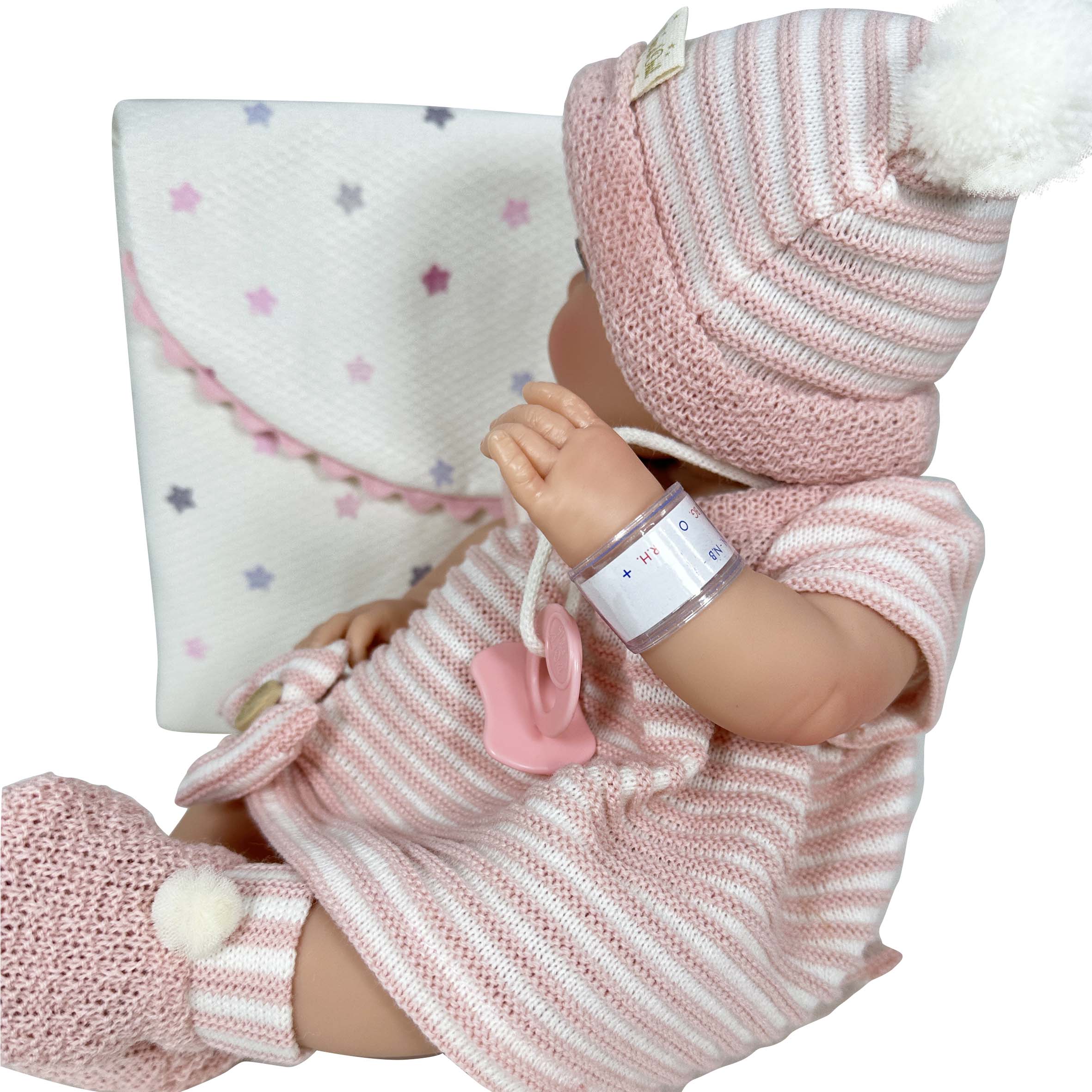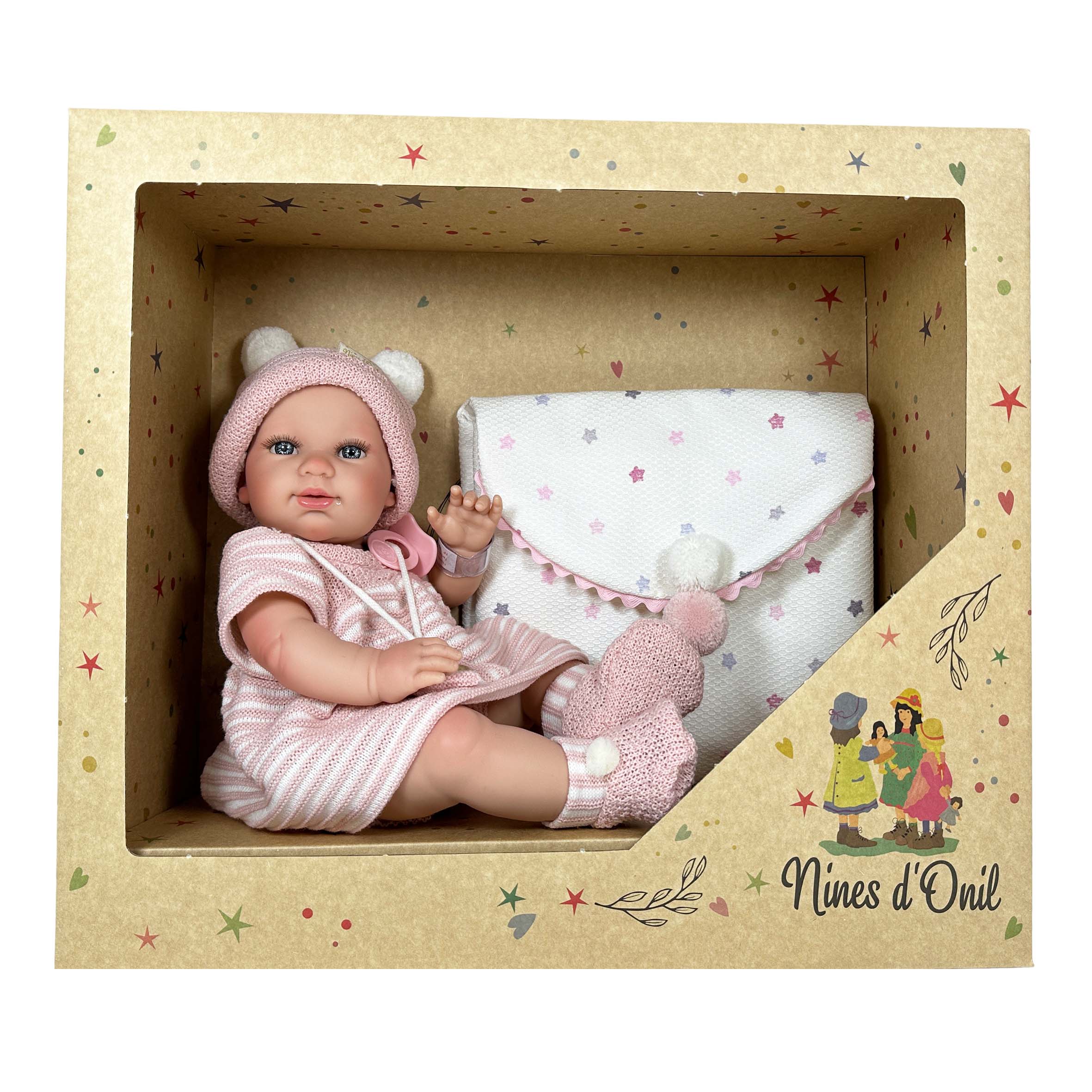 Nines D'Onil: Новородено бебе с плик за смяна на дрехи, биберон и гривна от родилното отделение – 37 см, момиче.