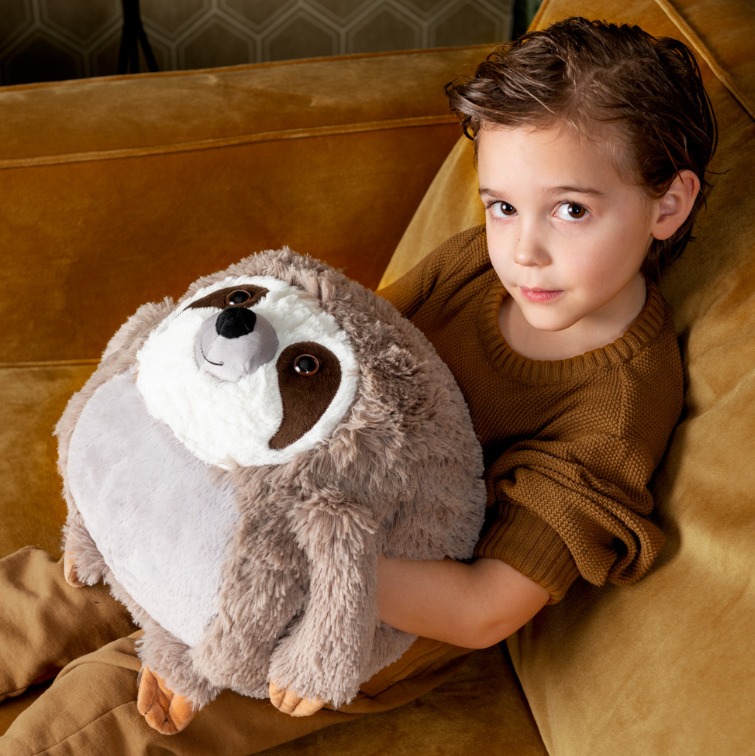 Noxxiez 3в1 гушкаща плюшена играчка и възглавница за сън и затопляне на ръцете