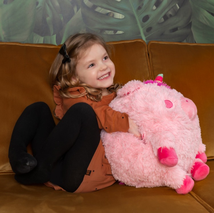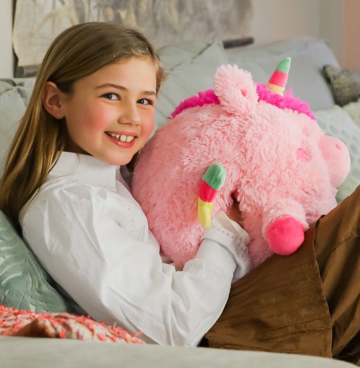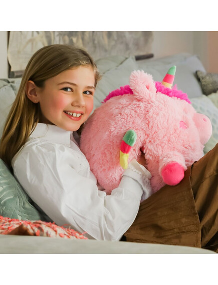 Noxxiez 3в1 гушкаща плюшена играчка и възглавница за сън и затопляне на ръцете - Еднорог