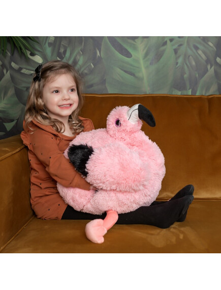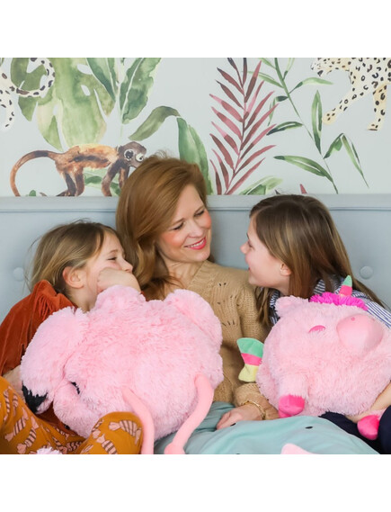 Noxxiez 3в1 гушкаща плюшена играчка и възглавница за сън и затопляне на ръцете - Фламинго