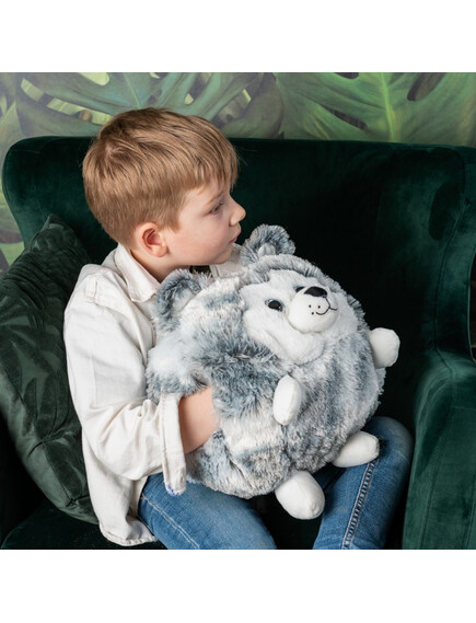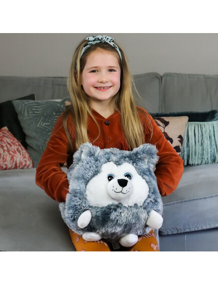 Noxxiez 3в1 гушкаща плюшена играчка и възглавница за сън и затопляне на ръцете - Хъски