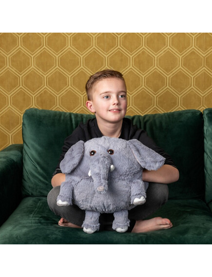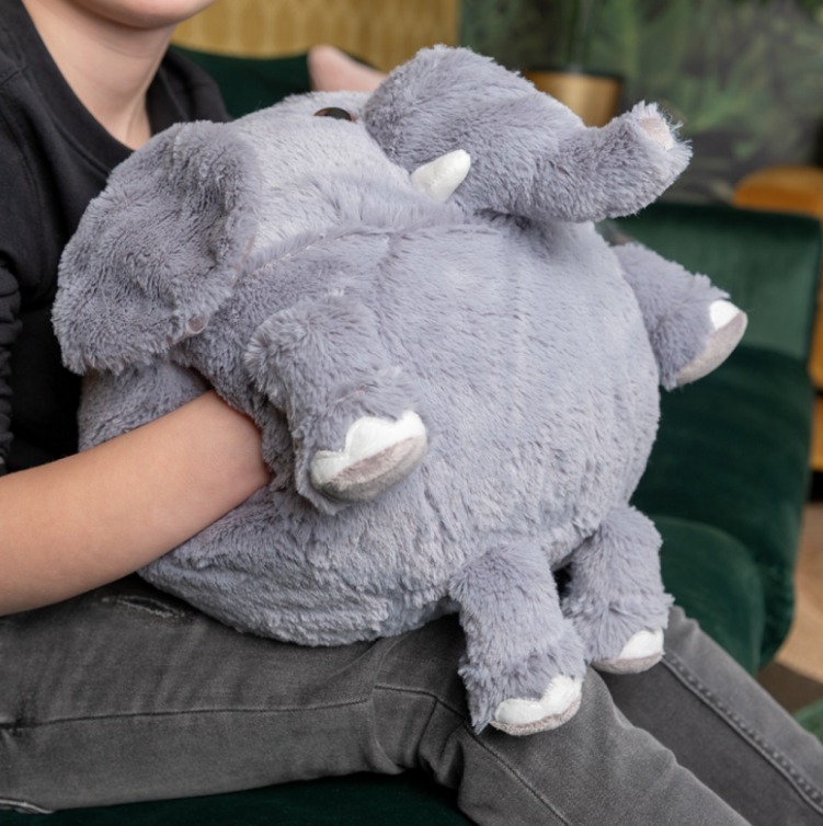 Noxxiez 3в1 гушкаща плюшена играчка и възглавница за сън и затопляне на ръцете - Слон