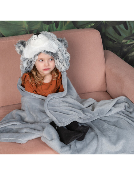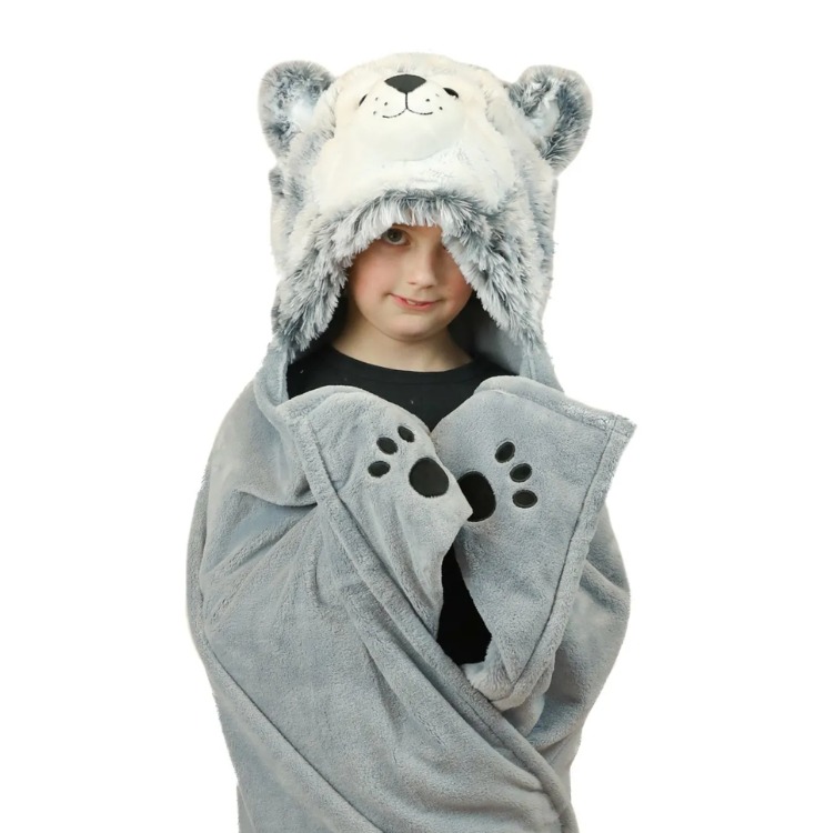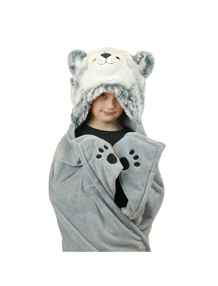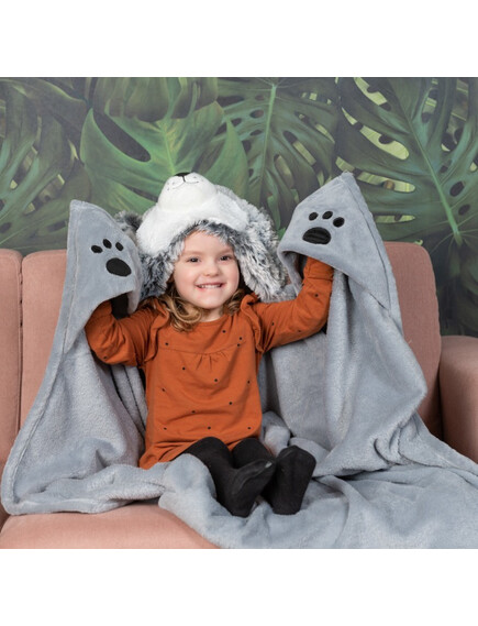 Noxxiez Одеяло с качулка и джобчета за ръце във формата на животно - Хъски
