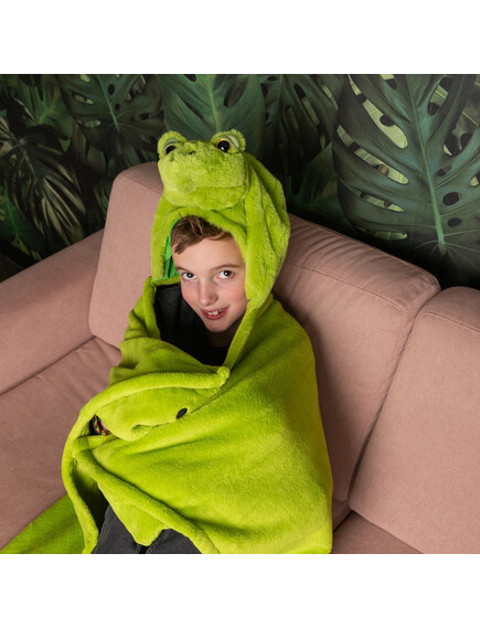 Голямо одеяло във формата на животно с качулка и джобчета за ръце, което може да се облича.