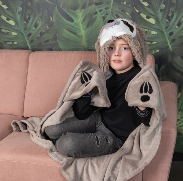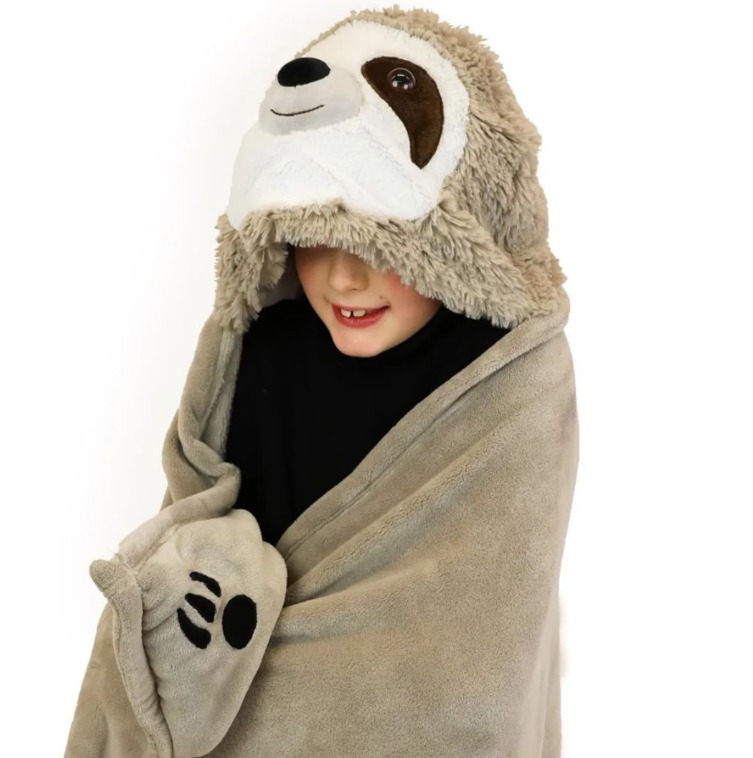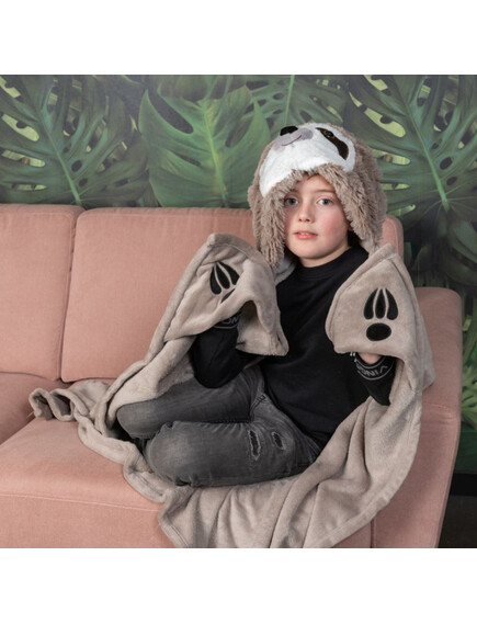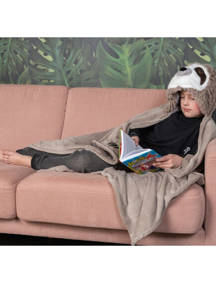 Noxxiez Одеяло с качулка и джобчета за ръце във формата на животно - Ленивец