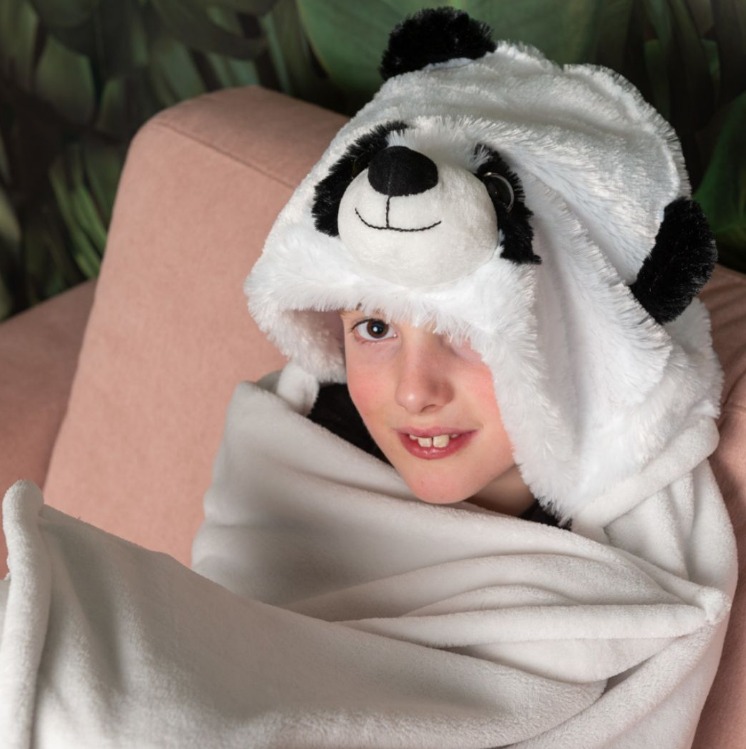 Noxxiez Одеяло с качулка и джобчета за ръце във формата на животно - Панда