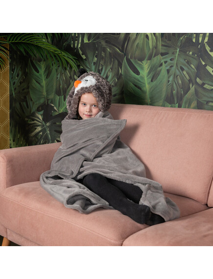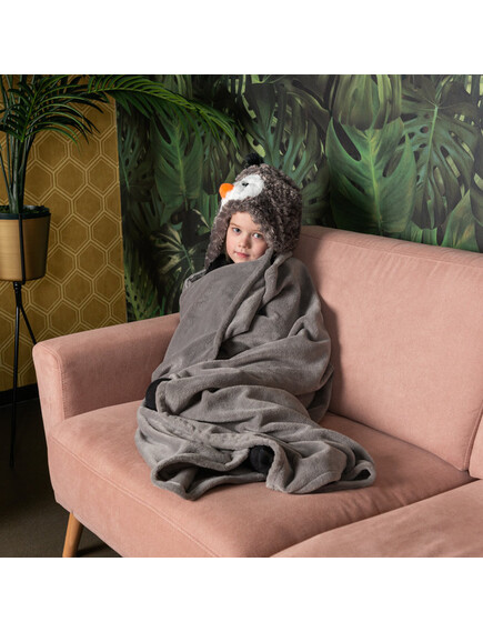 Noxxiez Одеяло с качулка и джобчета за ръце във формата на животно - Пингвин