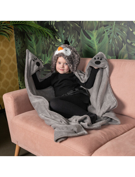 Голямо одеяло във формата на животно с качулка и джобчета за ръце, което може да се облича.