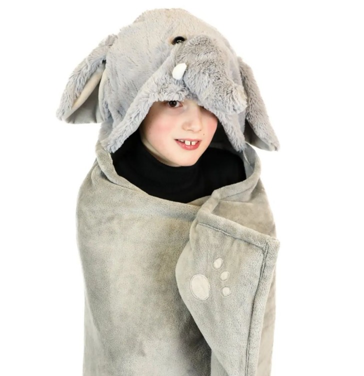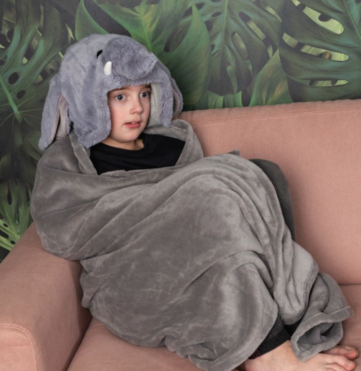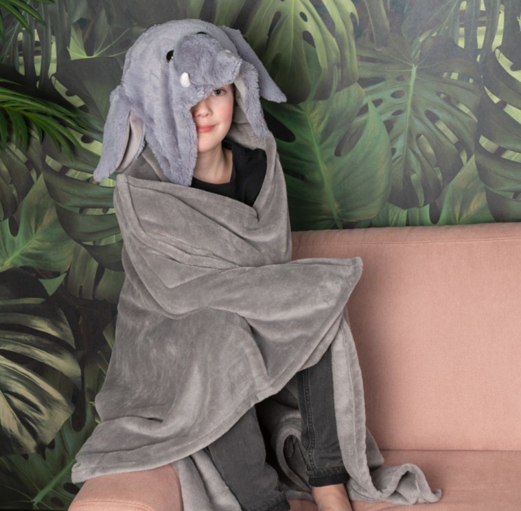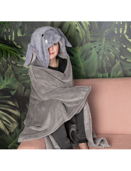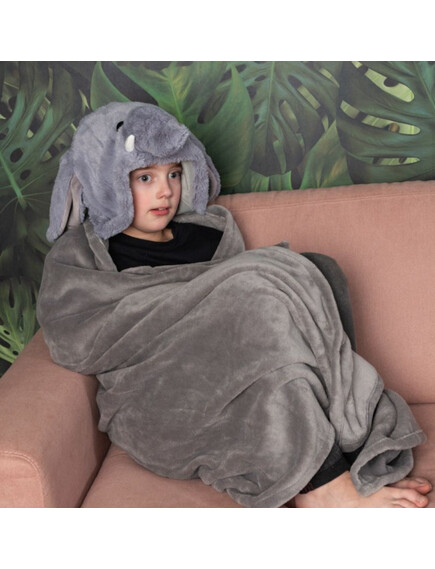 Noxxiez Одеяло с качулка и джобчета за ръце във формата на животно - Слон
