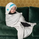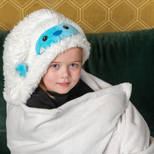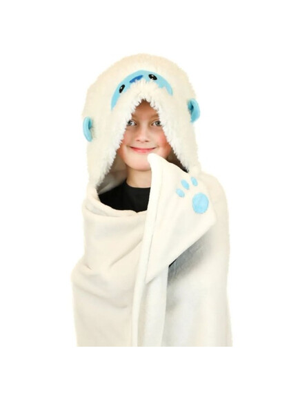 Голямо одеяло във формата на животно с качулка и джобчета за ръце, което може да се облича.