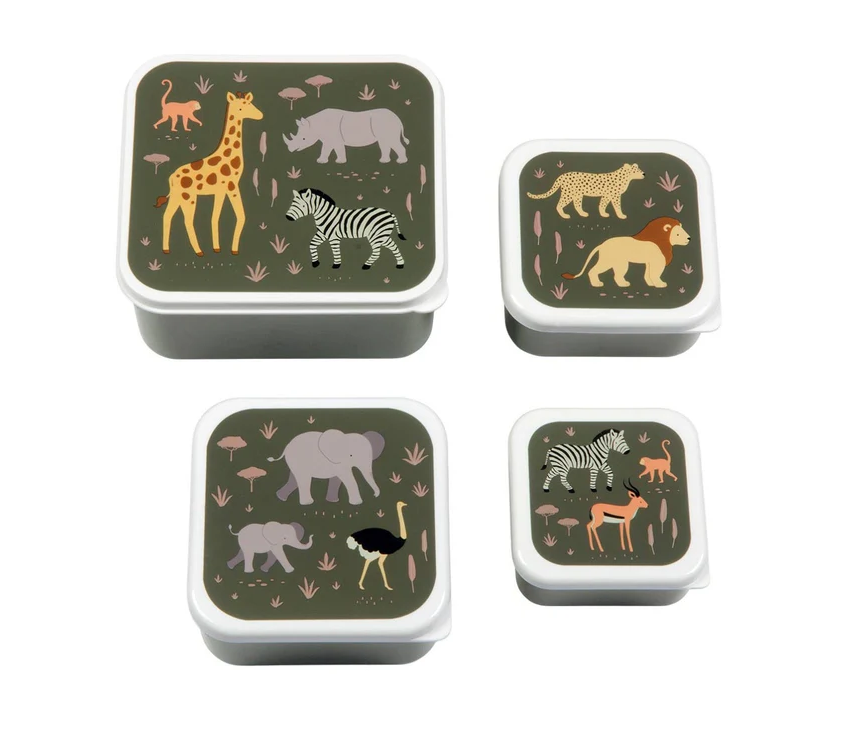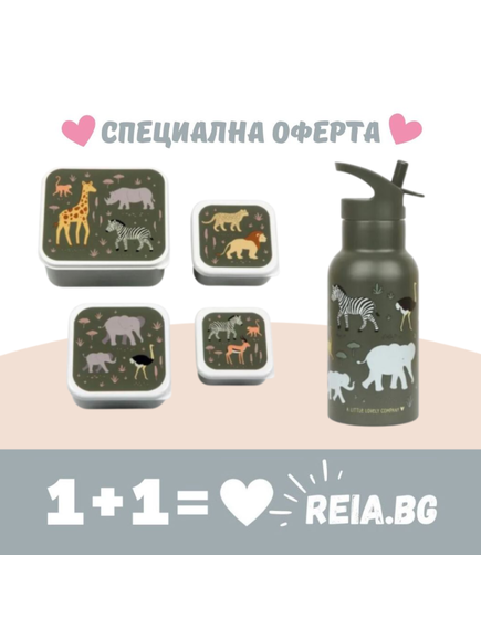 ОФЕРТА: A Little Lovely Company: Бутилка от неръждаема стомана и комплект от 4 бр кутии за храна - Savanna