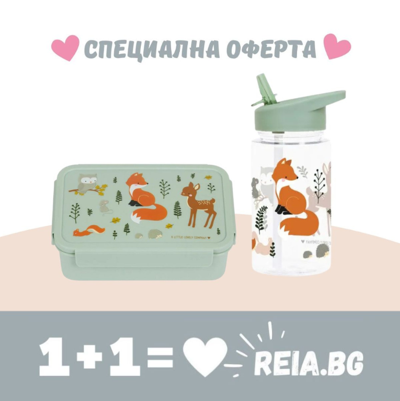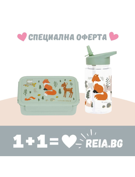 ОФЕРТА: A Little Lovely Company: Бутилка за вода от Tritan 450ml и Bento кутия за обяд - "Forest Friends"