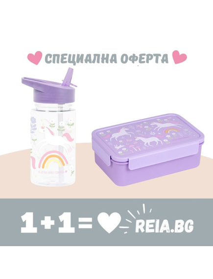 ОФЕРТА: A Little Lovely Company: Бутилка за вода от Tritan 450ml и Bento кутия за обяд - "Unicorn Dreams"