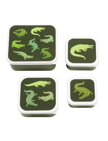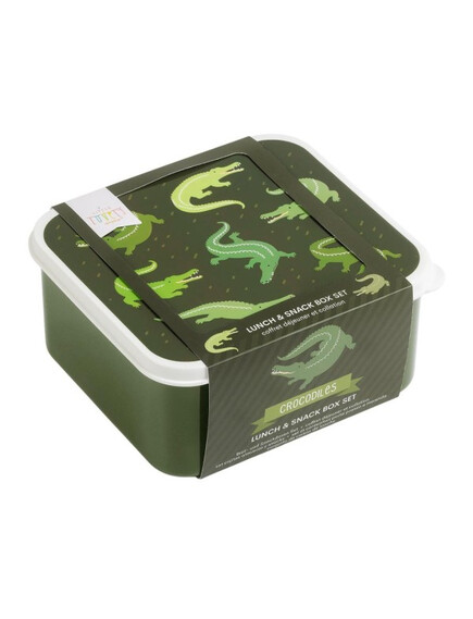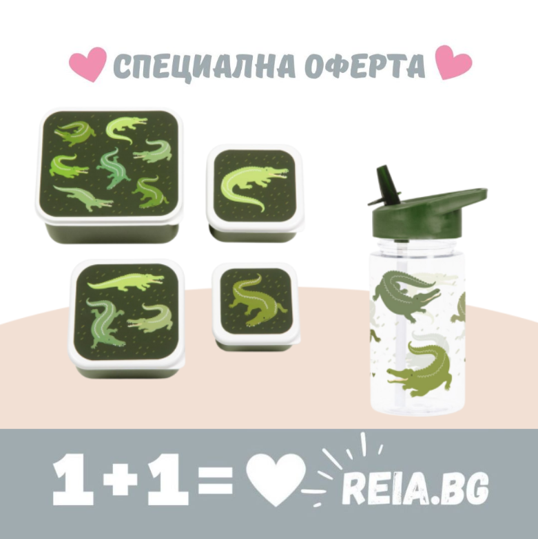 ОФЕРТА: A Little Lovely Company: Бутилка за вода от Tritan 450ml и комплект от 4 бр кутии за храна - Crocodiles