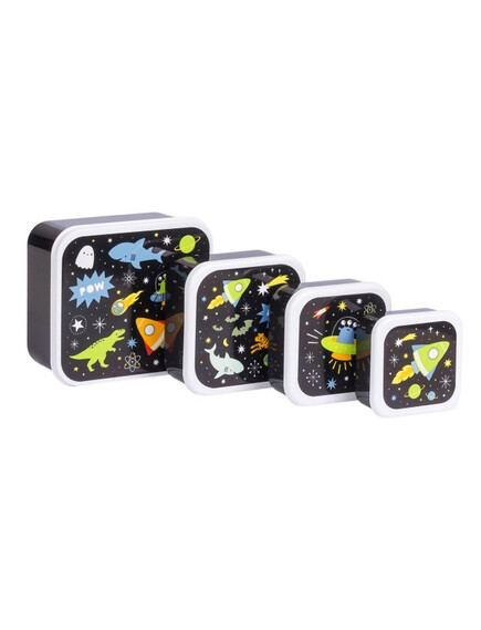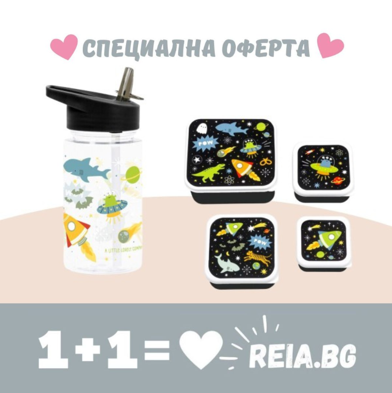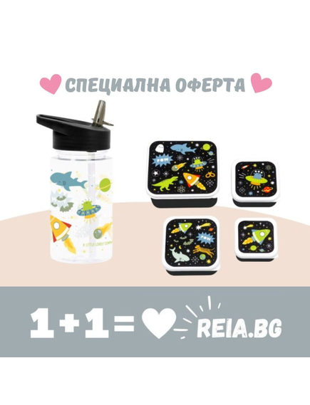 ОФЕРТА: A Little Lovely Company: Бутилка за вода от Tritan 450ml и комплект от 4 бр кутии за храна - Galaxy