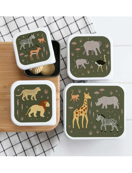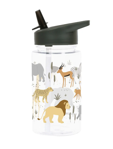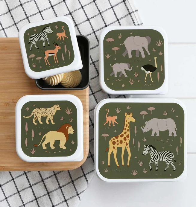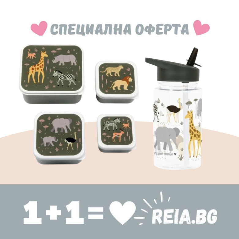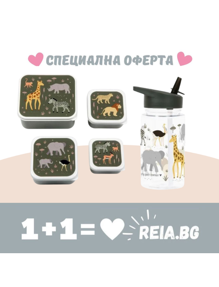 ОФЕРТА: A Little Lovely Company: Бутилка за вода от Tritan 450ml и комплект от 4 бр кутии за храна - Savanna