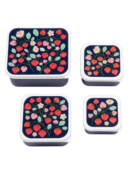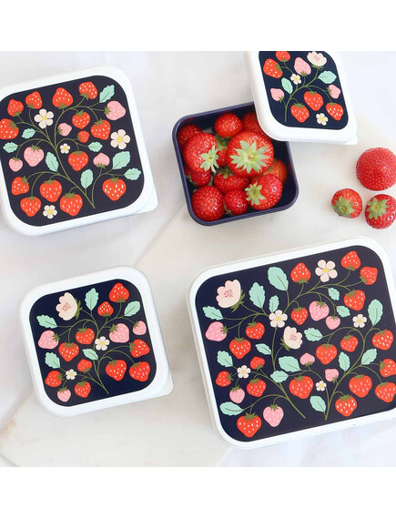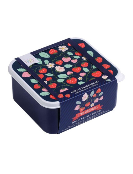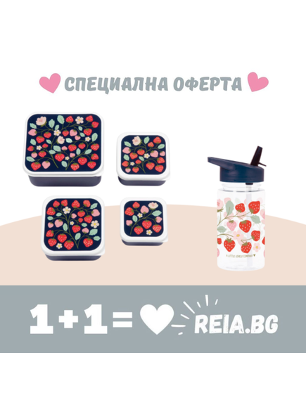 ОФЕРТА: A Little Lovely Company: Бутилка за вода от Tritan 450ml и комплект от 4 бр кутии за храна - Strawberries