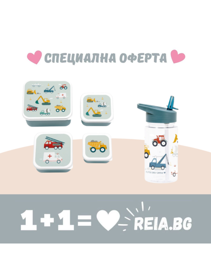 ОФЕРТА: A Little Lovely Company: Бутилка за вода от Tritan 450ml и комплект от 4 бр кутии за храна - Vehicles