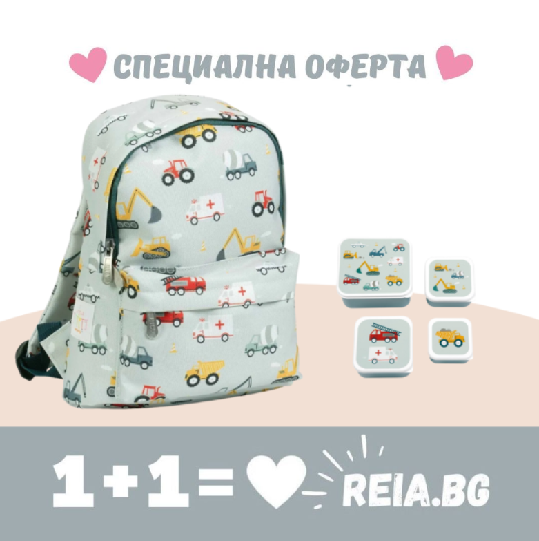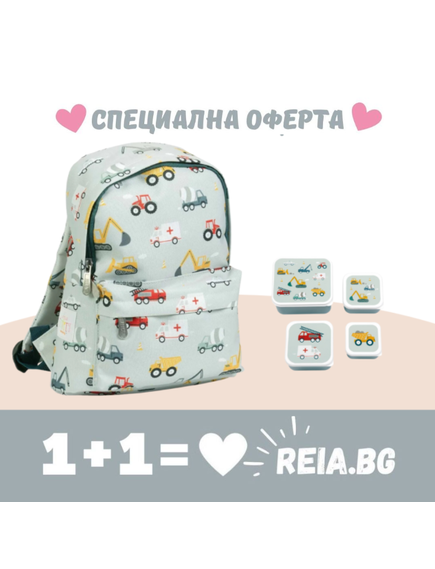 ОФЕРТА: A Little Lovely Company: Малка Раница 23,5 x 30 x 10 cm + Комплект кутии за храна" Автомобили "