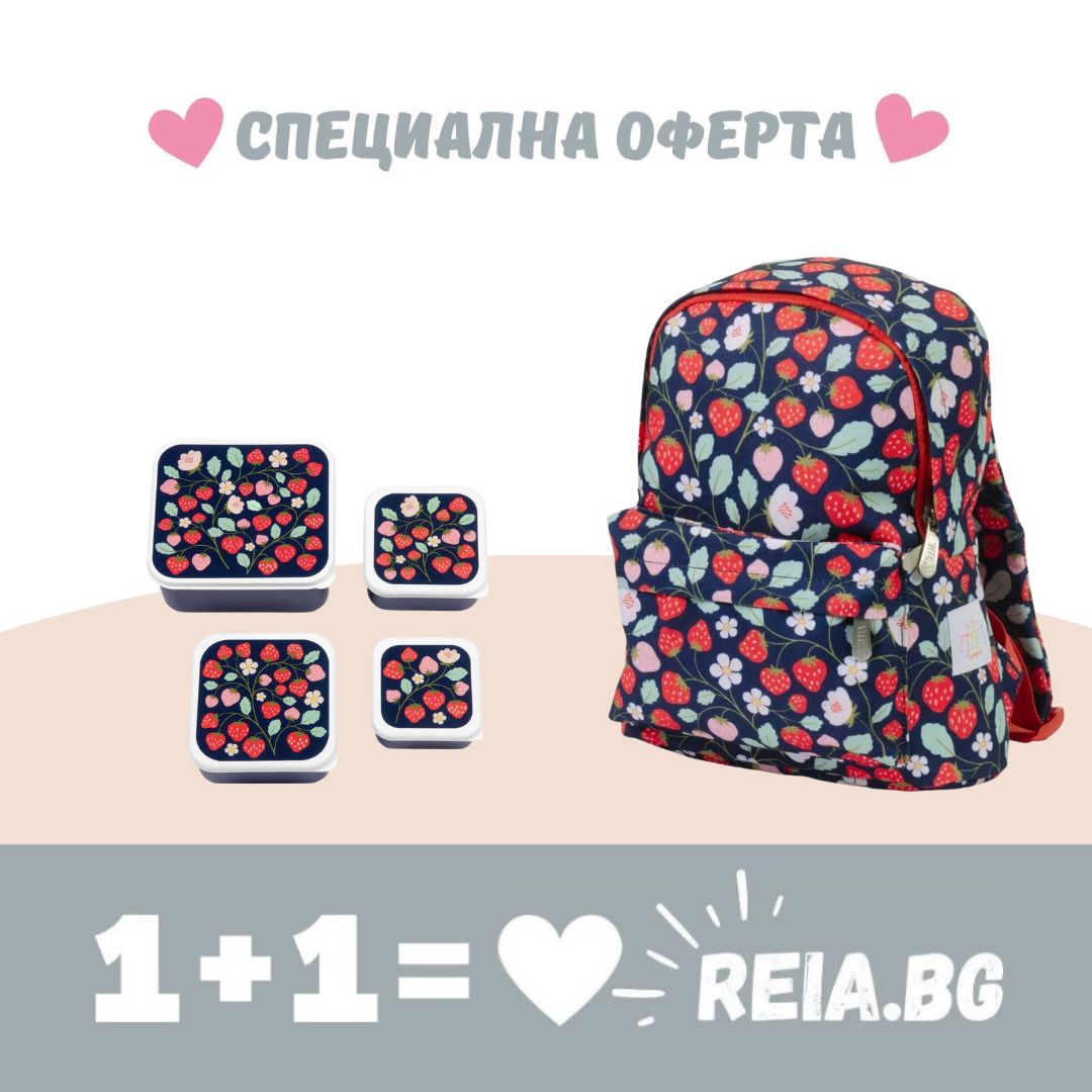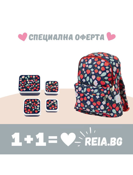 Комбо, което включва: Малка раница и комплект кутии за храна (Ягодки).