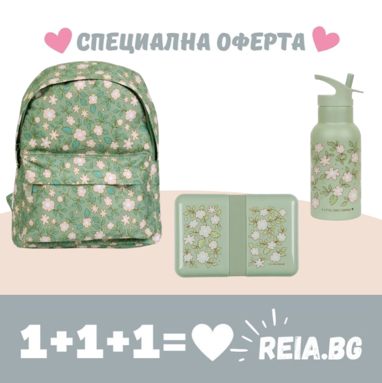 ОФЕРТА: A Little Lovely Company: Малка раничка за детска градина + Кутия за храна + Бутилка от невъждаема стомана - Blossom Sage