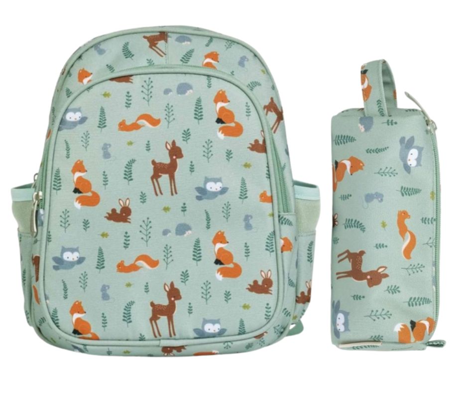 ОФЕРТА: A Little Lovely Company: Раница с изотермичен джоб 27 x 32 x 19 cm + несесер моливник Forest friends