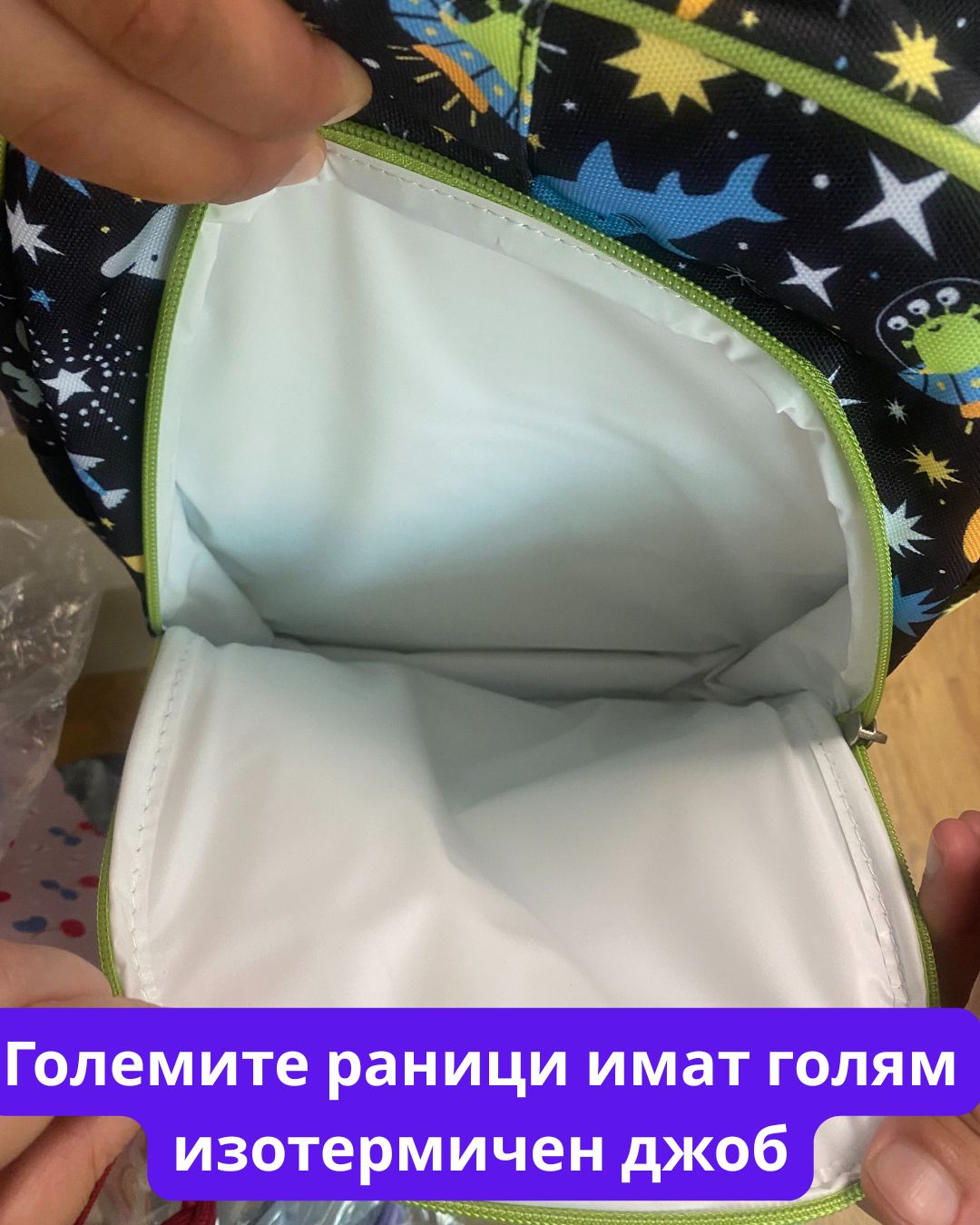 Комбо, което включва: Раница с изотермичен джоб, несесер и бутилка от неръждаема стомана (Веселба).