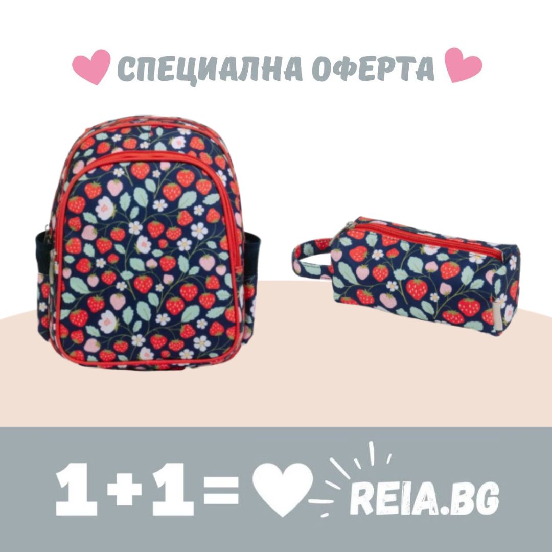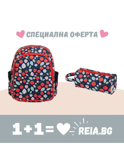 Комбо, което включва: Раница с изотермичен джоб и несесер (Ягодки).