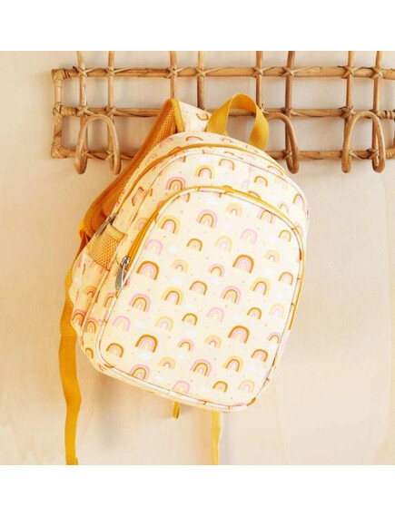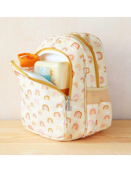 ОФЕРТА:A Little Lovely Company: Раница с изотермичен джоб 27 x 32 x 19 cm+стоманена бутилка "Rainbows"